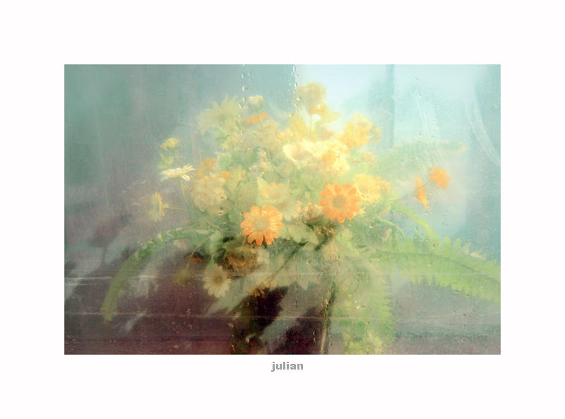 비닐하우스 밖에서 찍은것 같은데요. 물방울이 안 쪽으로 맺혀서...